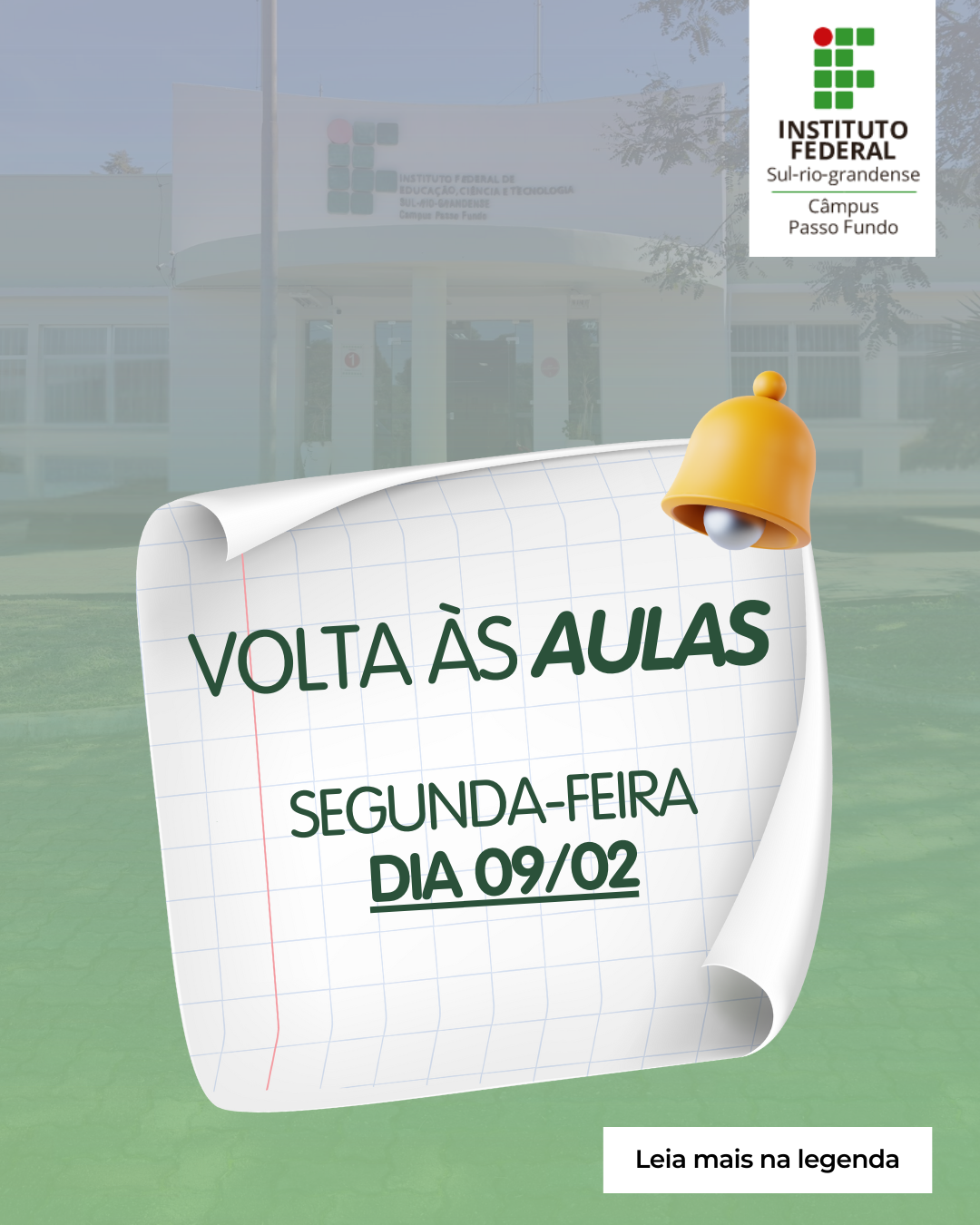 O Instituto Federal Sul-rio-grandense (IFSul) Câmpus Passo Fundo realizou, na segunda-feira, 9 de fevereiro, a cerimônia oficial de retorno letivo 2026, com atividades nos turnos da manhã, tarde e noite. O início deste semestre foi marcado por um momento histórico para a instituição: o começo das primeiras turmas noturnas dos cursos de graduação em Engenharia Civil e Engenharia Mecânica.