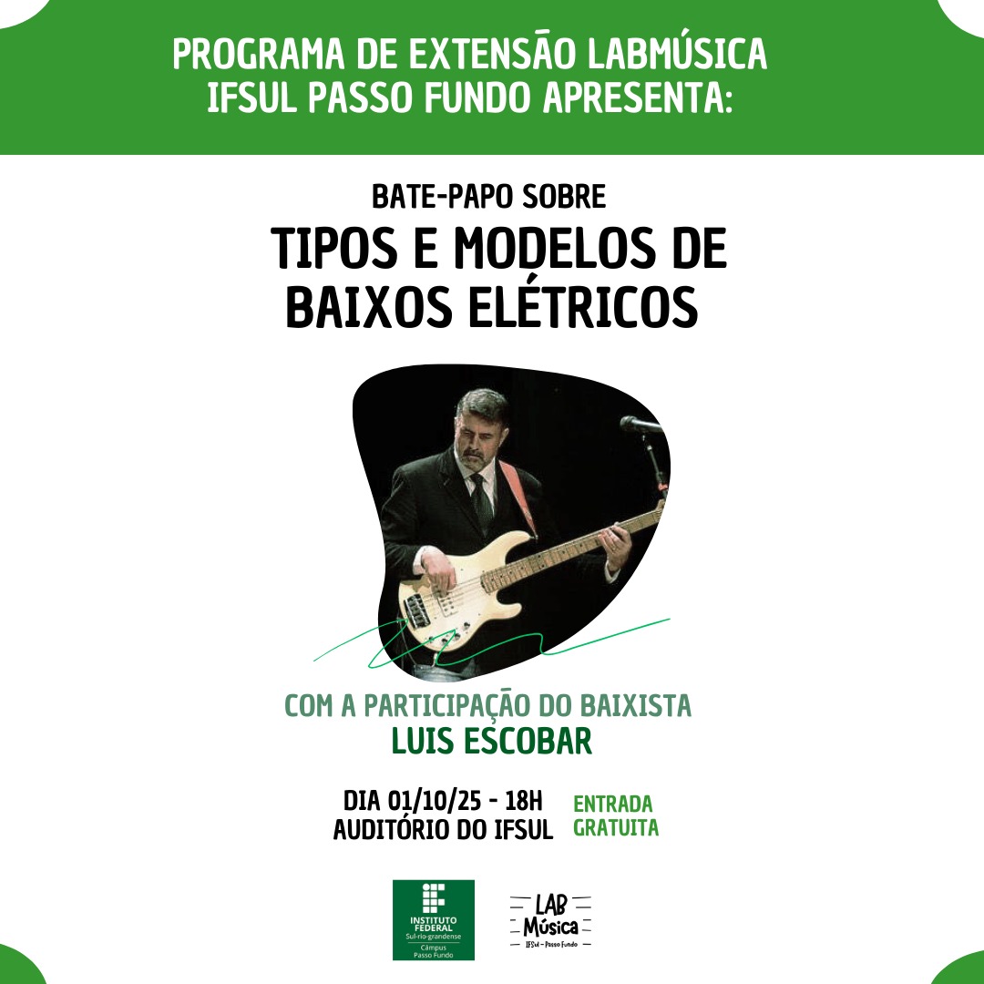 IFSul promove bate-papo sobre baixos elétricos com participação de Luis Escobar